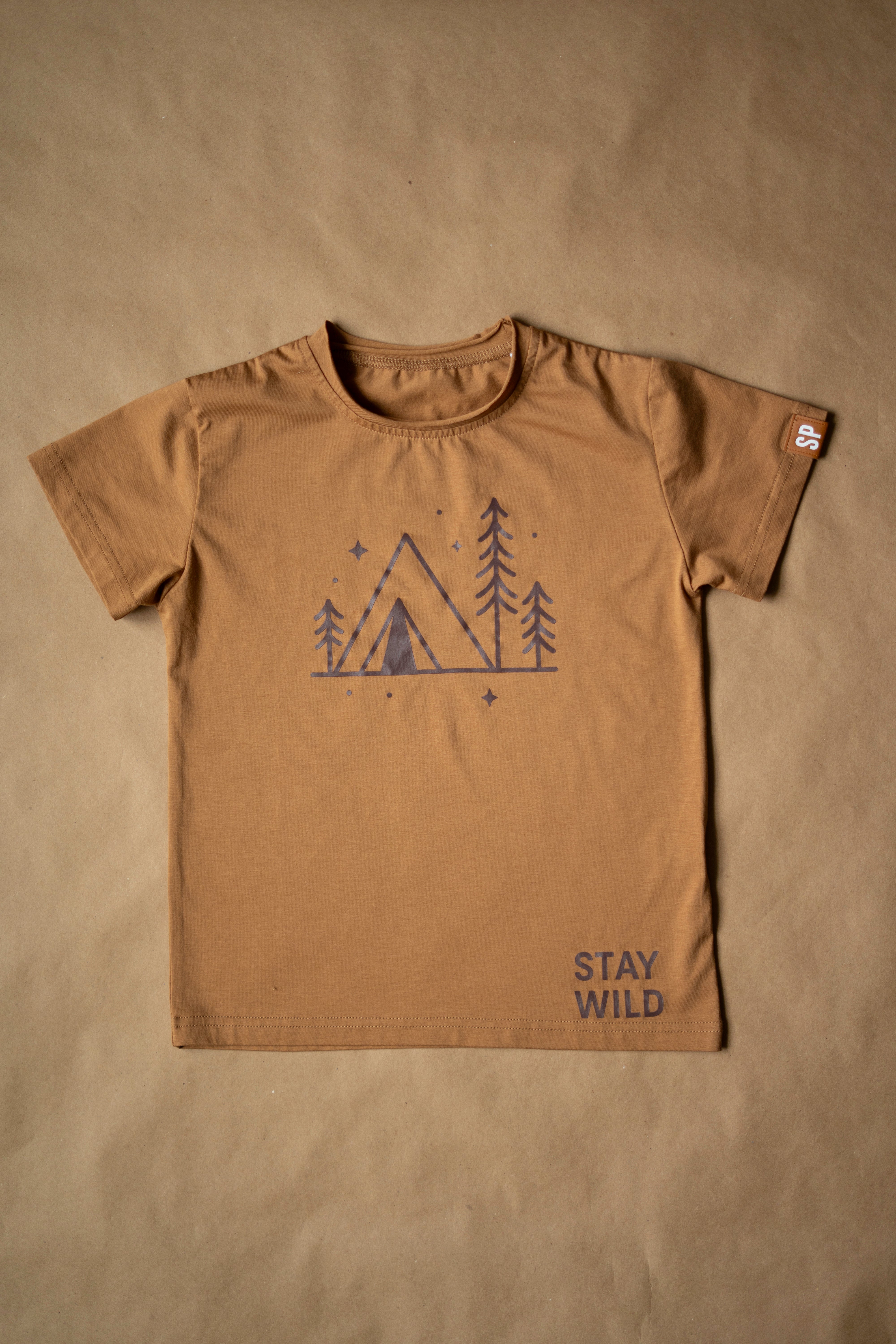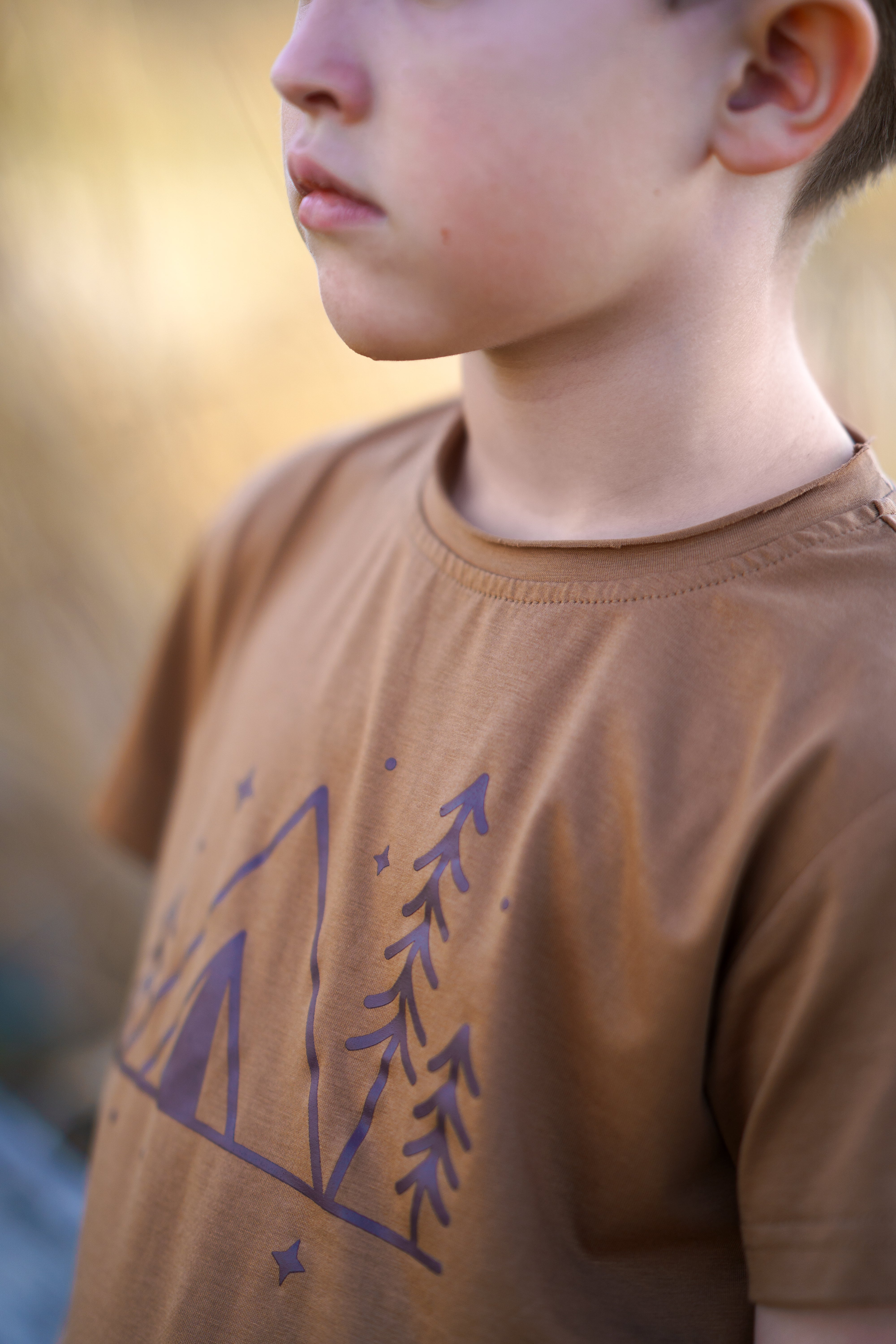 Inspired by quiet forest trails and nights under the stars, the Whispering Woods Tee captures the calm of the outdoors in an everyday essential. Featuring a minimal campsite and pine tree graphic, this tee is made for kids who feel most at home outside.