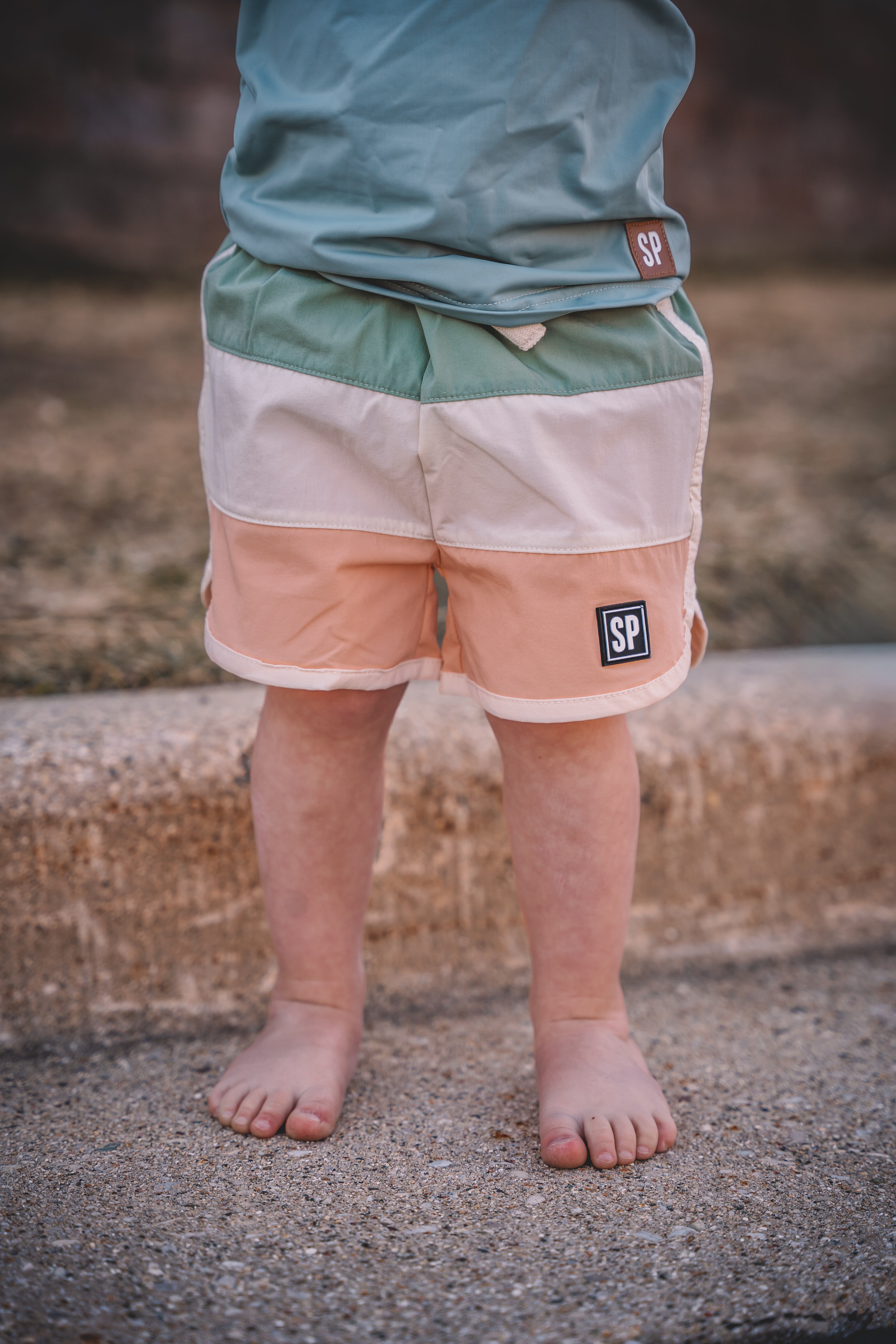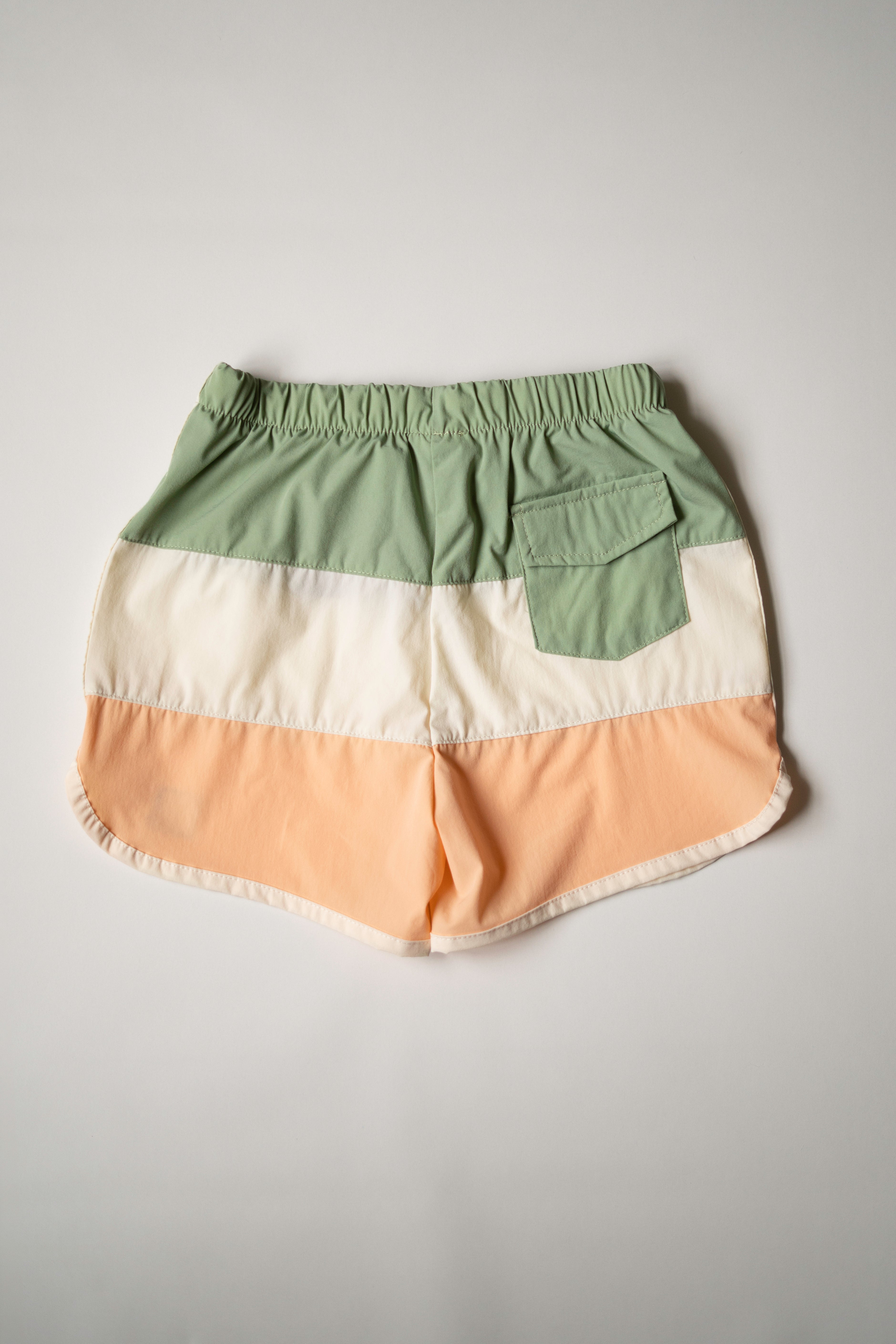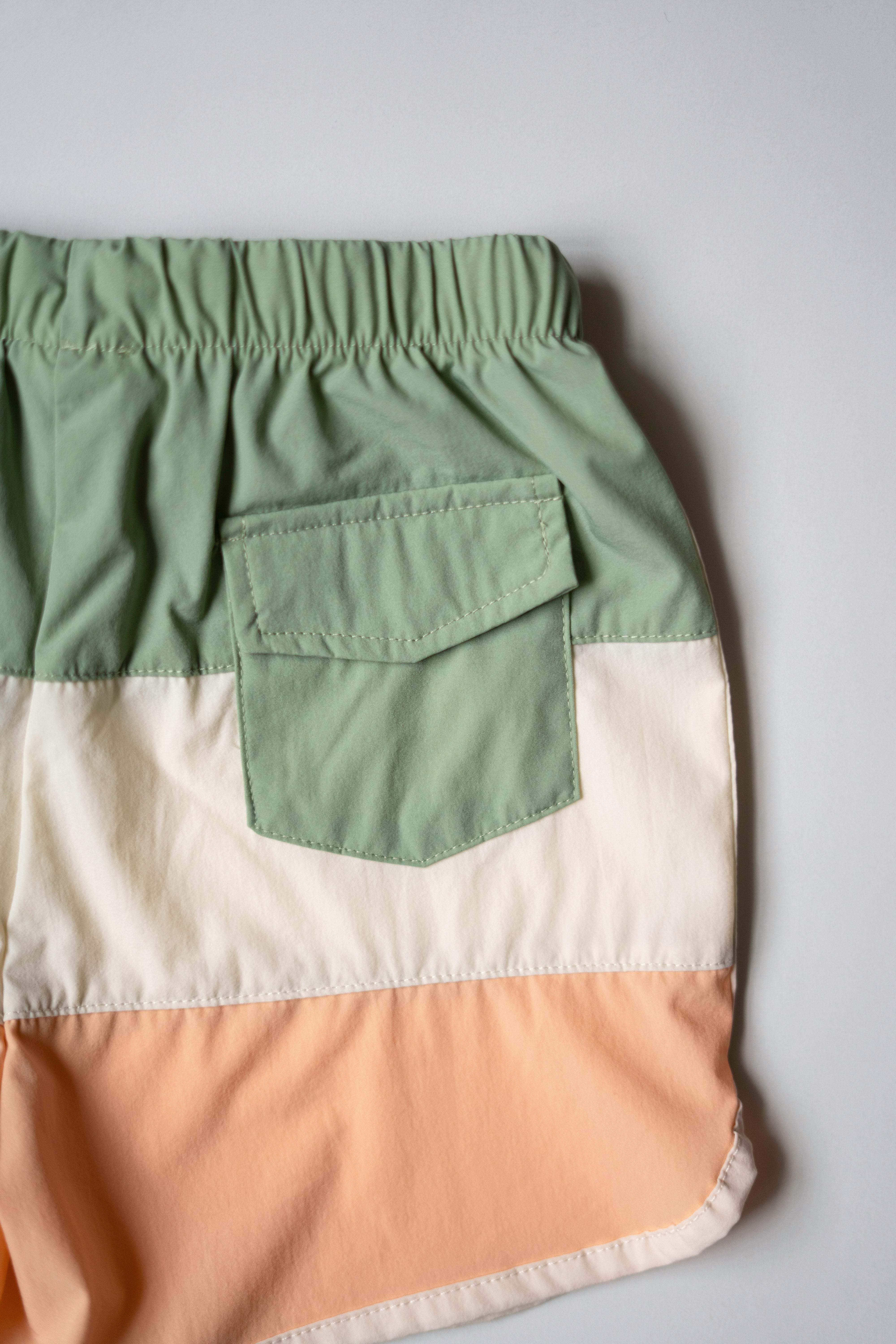 Featuring a fresh color-block design inspired by coastal lagoons and sandy shores, these shorts move easily between water and land. The elastic waistband and adjustable drawstring create a secure, comfortable fit for active little explorers.