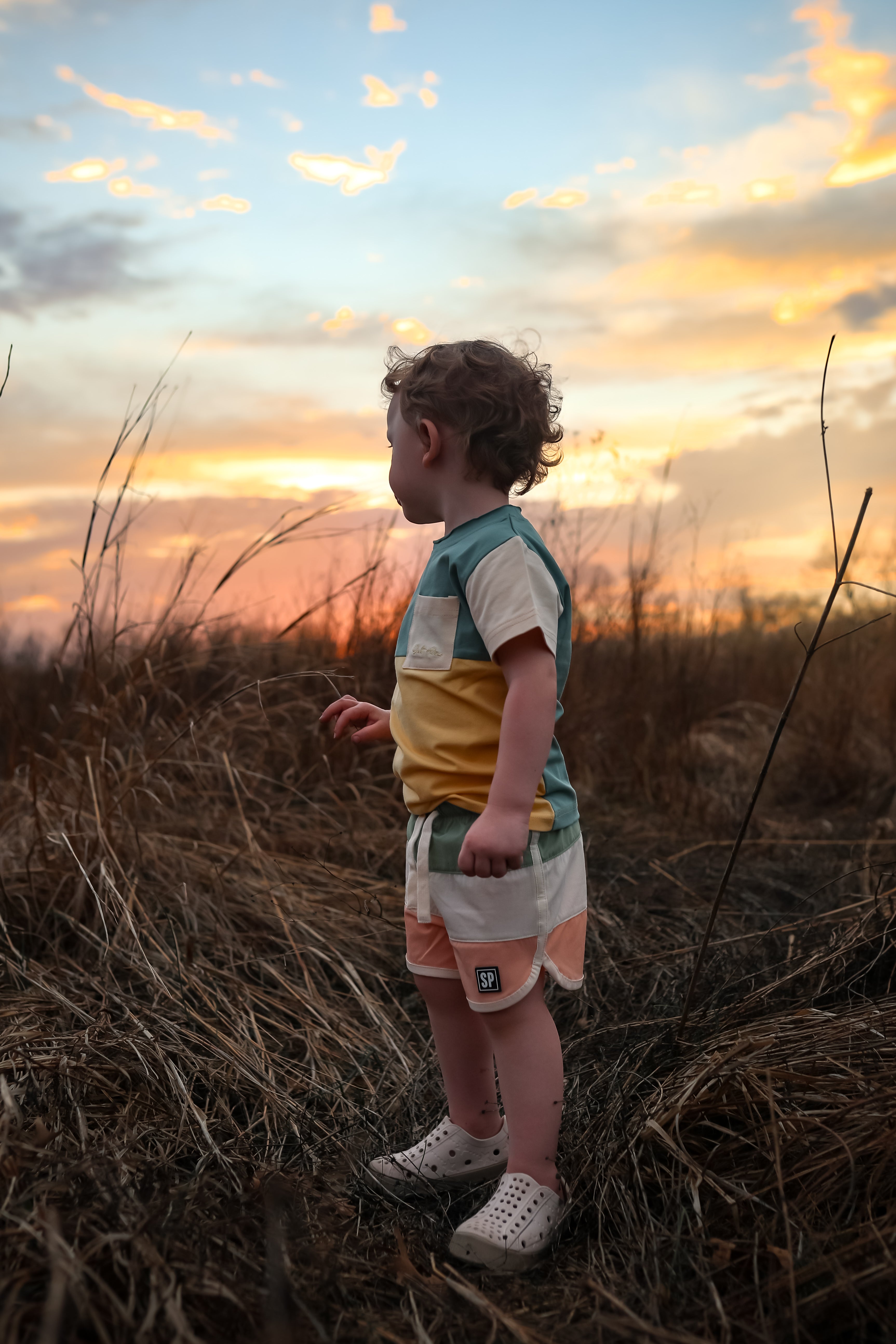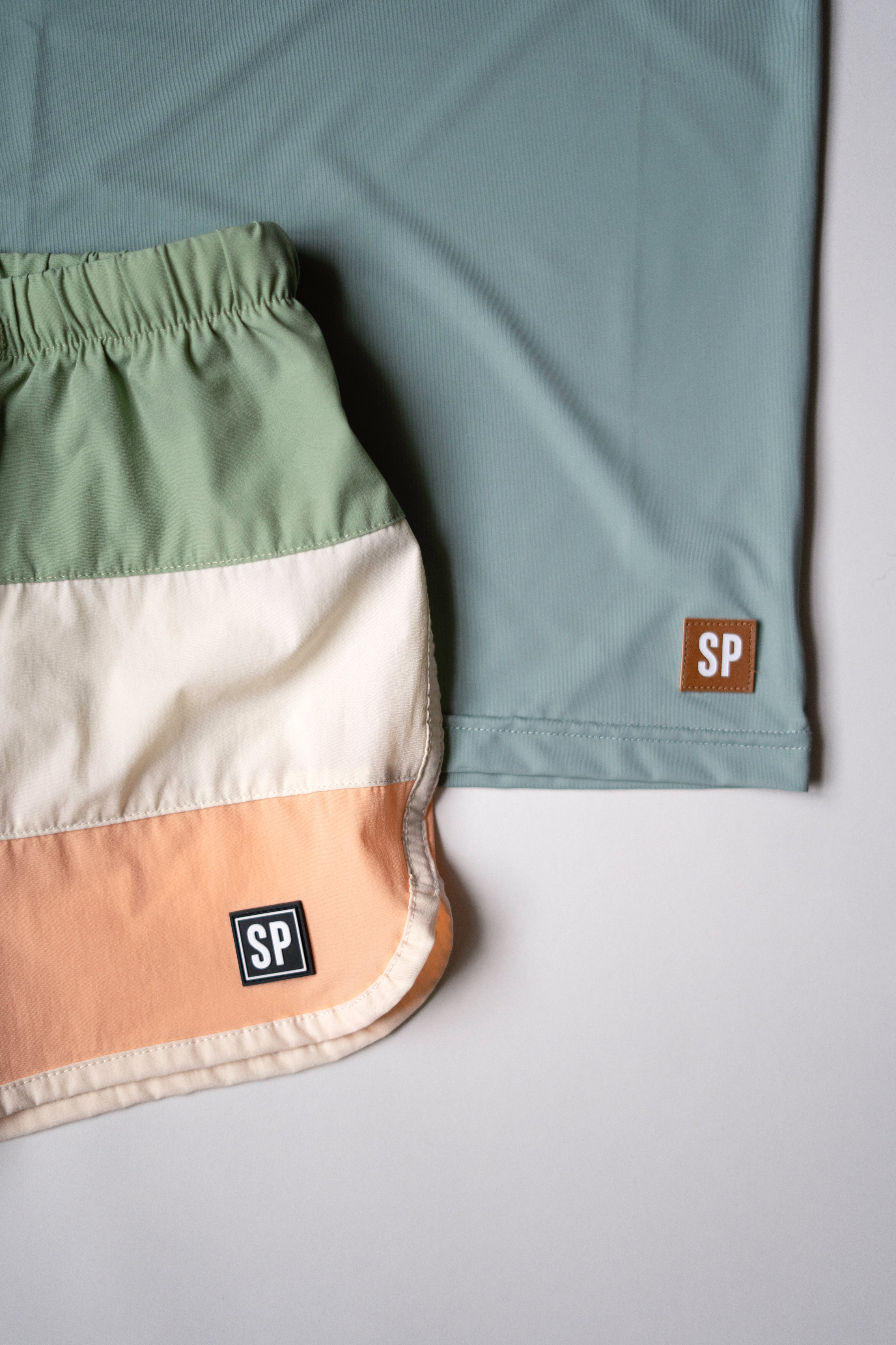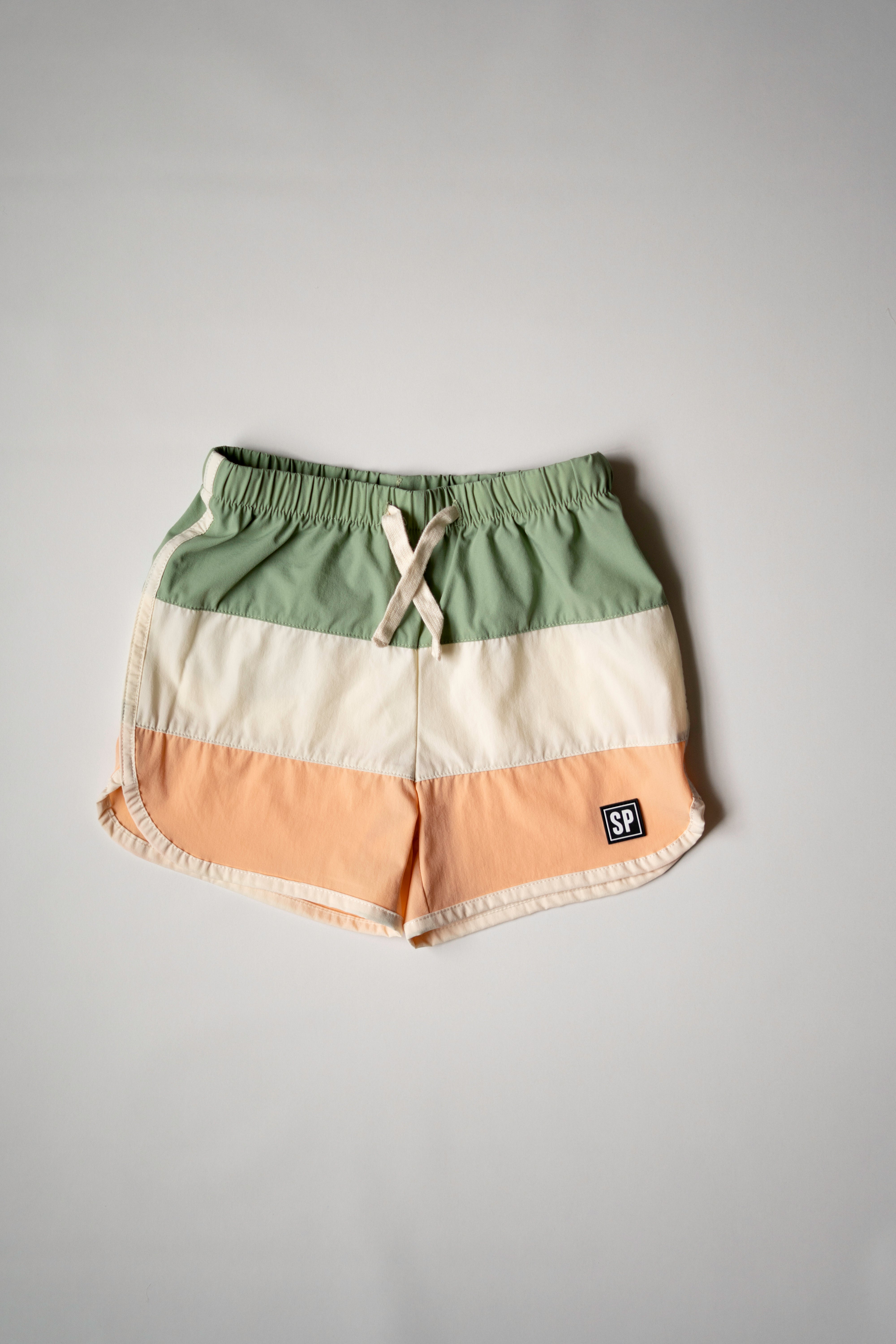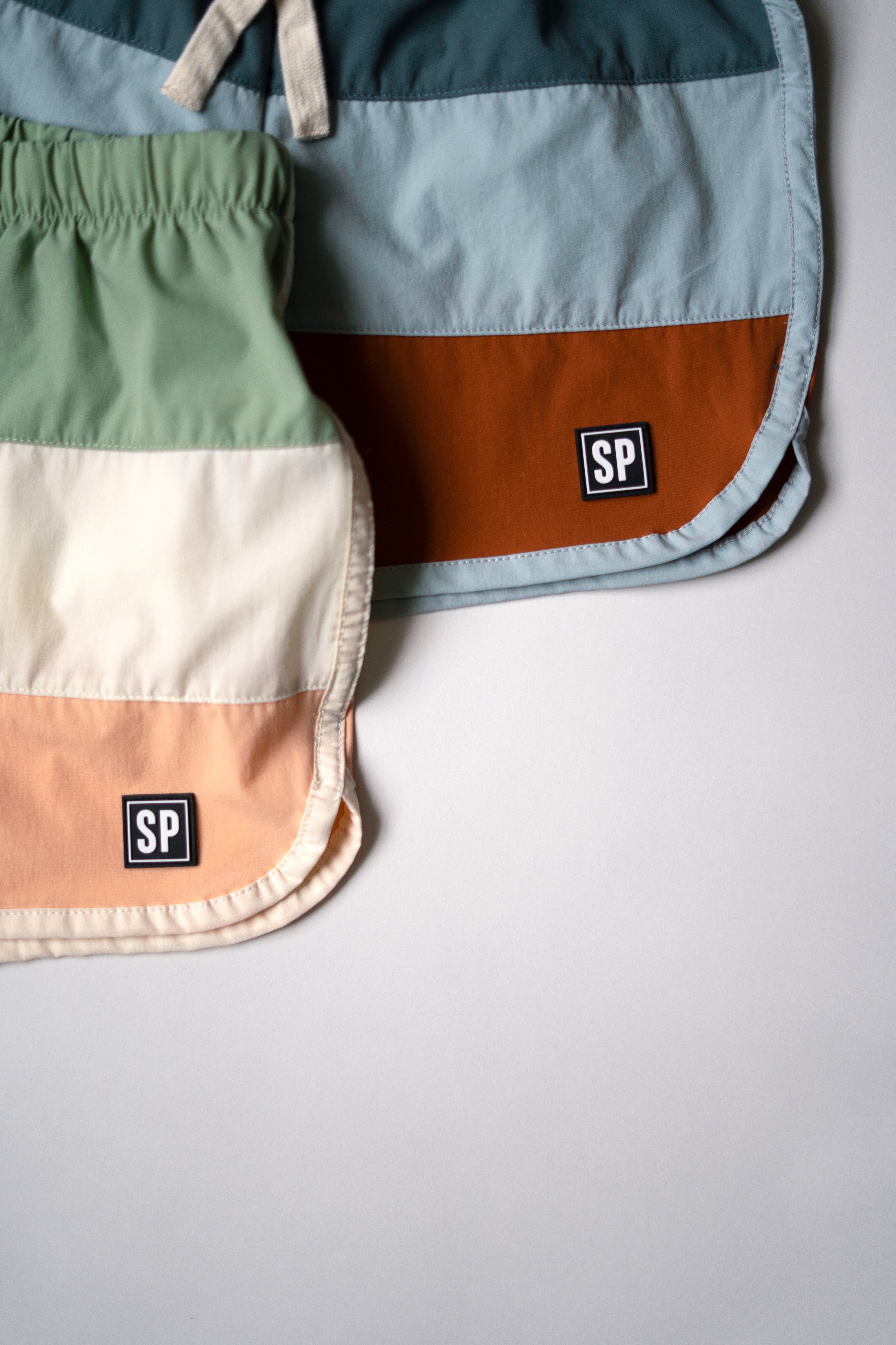 Featuring a fresh color-block design inspired by coastal lagoons and sandy shores, these shorts move easily between water and land. The elastic waistband and adjustable drawstring create a secure, comfortable fit for active little explorers.