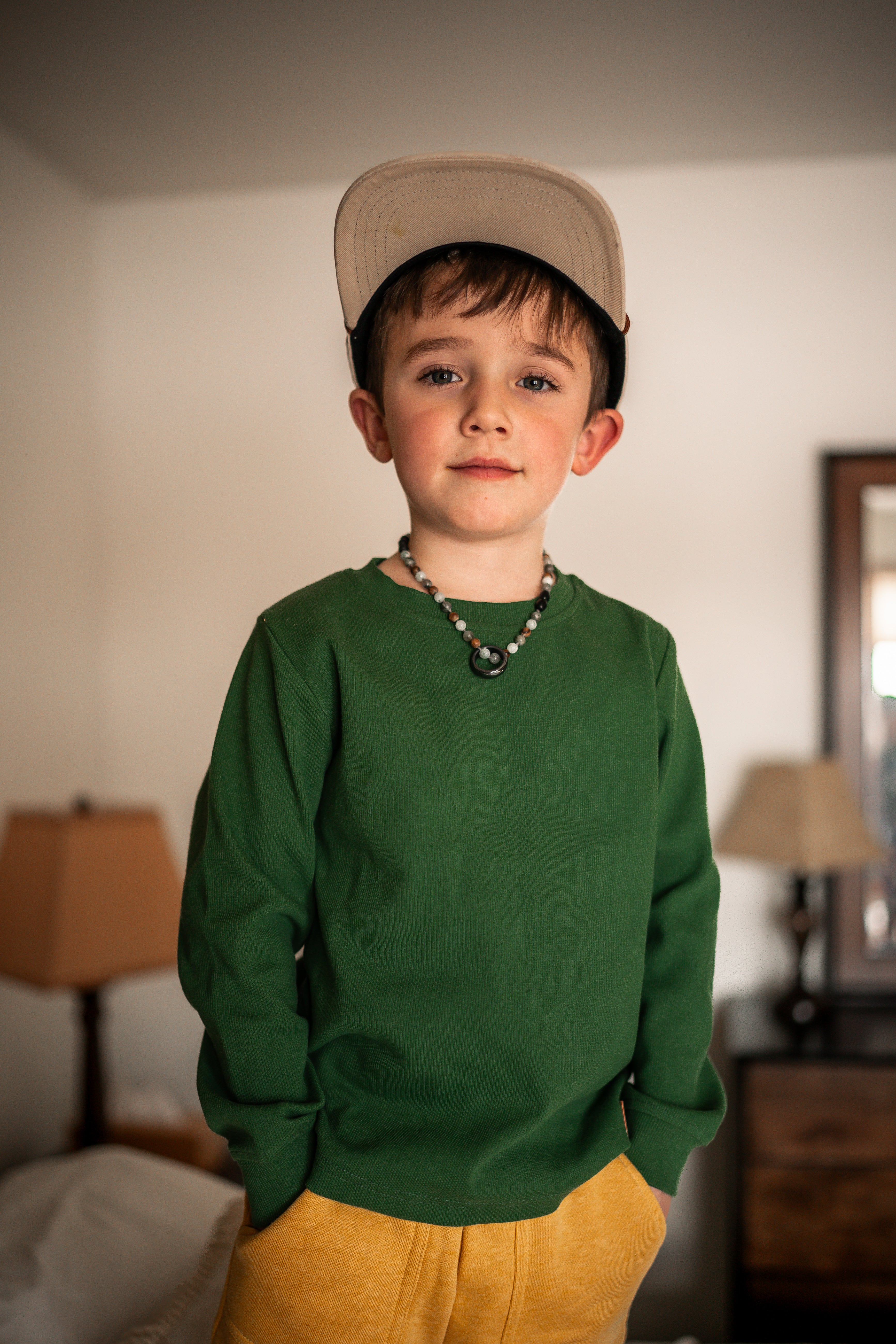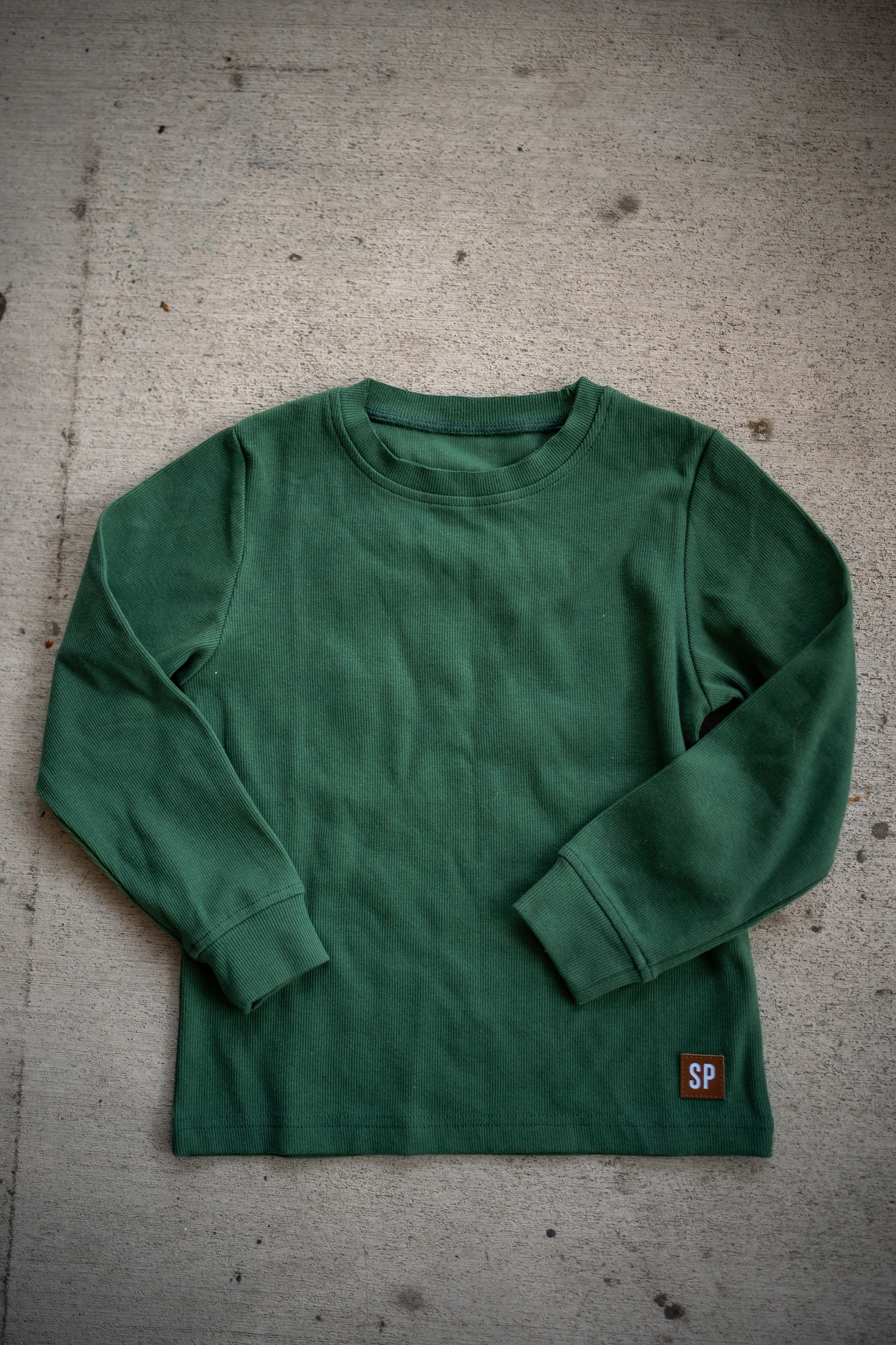 The stretchy ribbed fabric moves with them, making it perfect for cooler mornings, forest walks, or cozy indoor days. Finished with a classic crew neckline, cuffed sleeves, and our signature SP hem tag, it’s a timeless essential that pairs with just about everything.